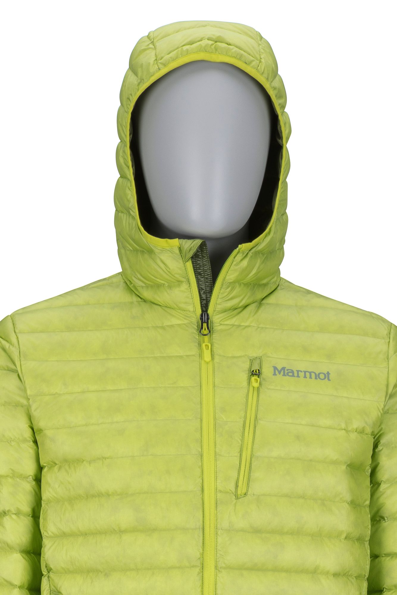 Layer your marmot men s quasar nova hooded down jacket under your shell and hop in line for first chair.